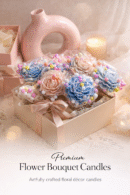 Wrapped like a floral bouquet, this candle adds a luxurious, aesthetic touch to any space. Perfect for gifting, celebrations, or simply elevating your home décor, it’s designed to be admired—whether lit or kept as a decorative piece.