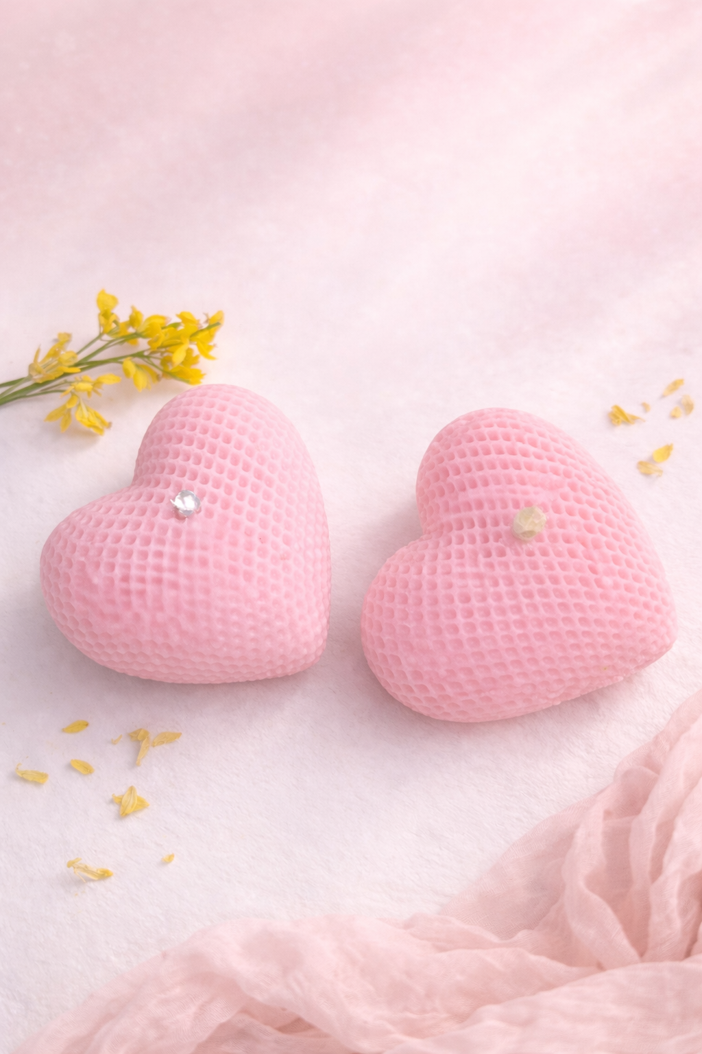 Add a soft romantic glow to your space with our handcrafted Blush Heart Crystal Candle. Designed in a delicate heart shape with a textured finish and a crystal accent at the center, this candle is perfect for gifting or self-love moments. Its pastel pink tone creates a calming, aesthetic vibe—ideal for cozy evenings, special occasions, or Valentine’s surprises.