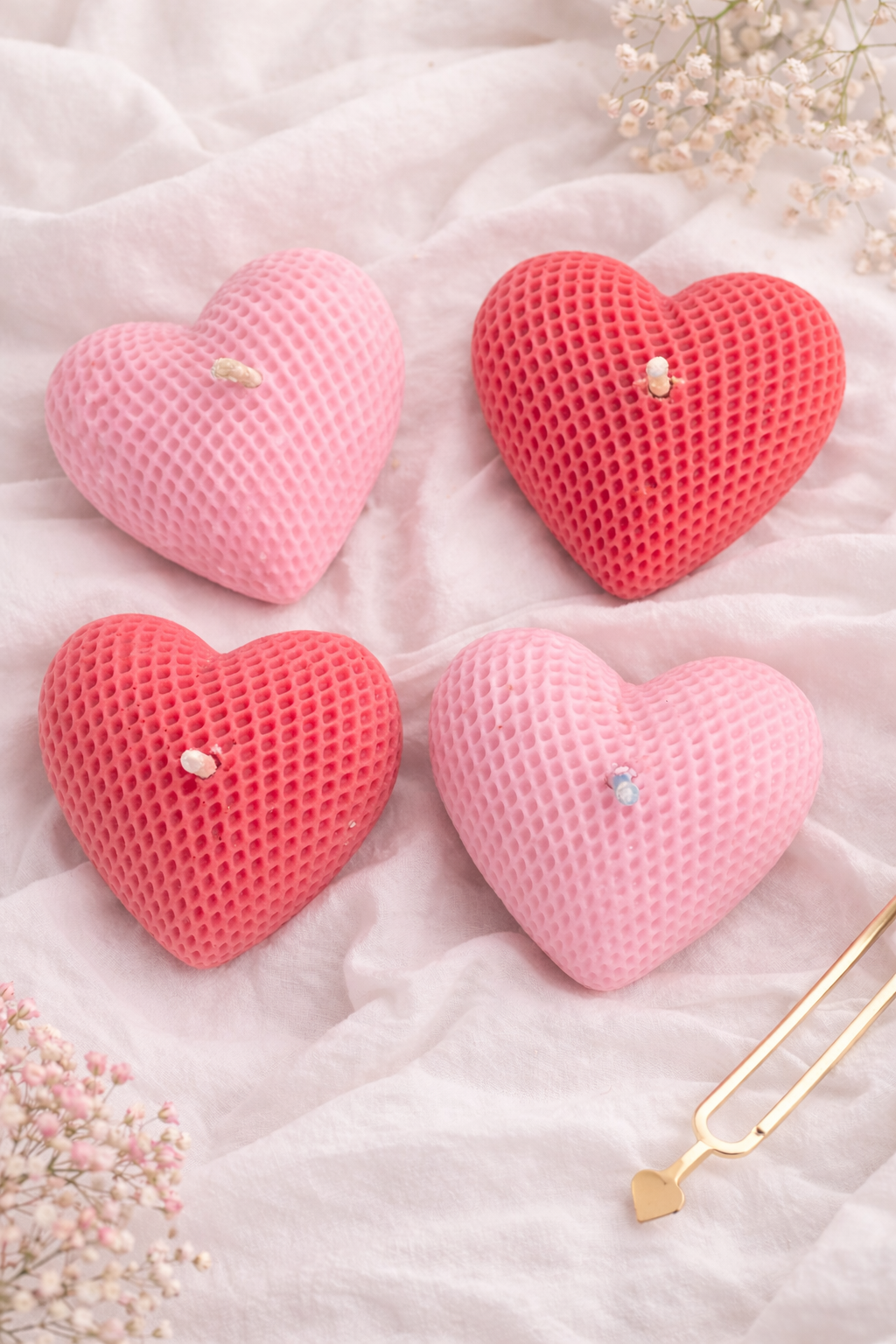Add a soft romantic glow to your space with our handcrafted Blush Heart Crystal Candle. Designed in a delicate heart shape with a textured finish and a crystal accent at the center, this candle is perfect for gifting or self-love moments. Its pastel pink tone creates a calming, aesthetic vibe—ideal for cozy evenings, special occasions, or Valentine’s surprises.