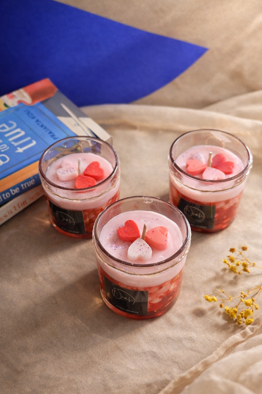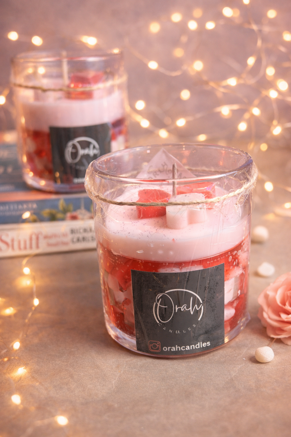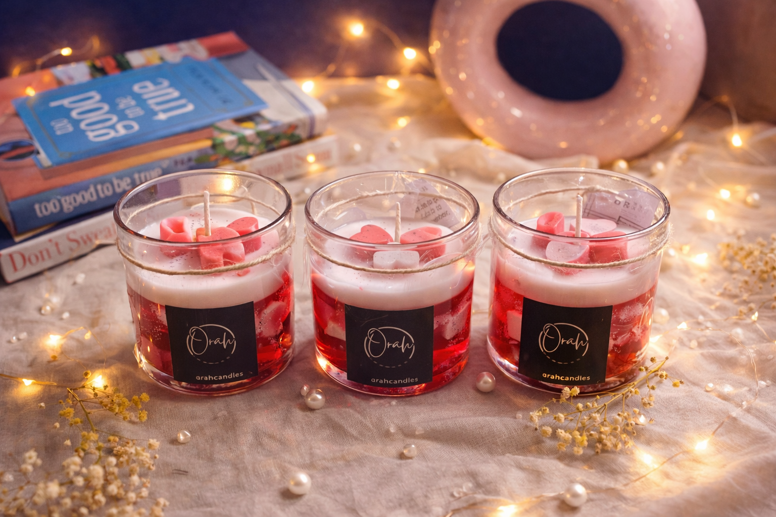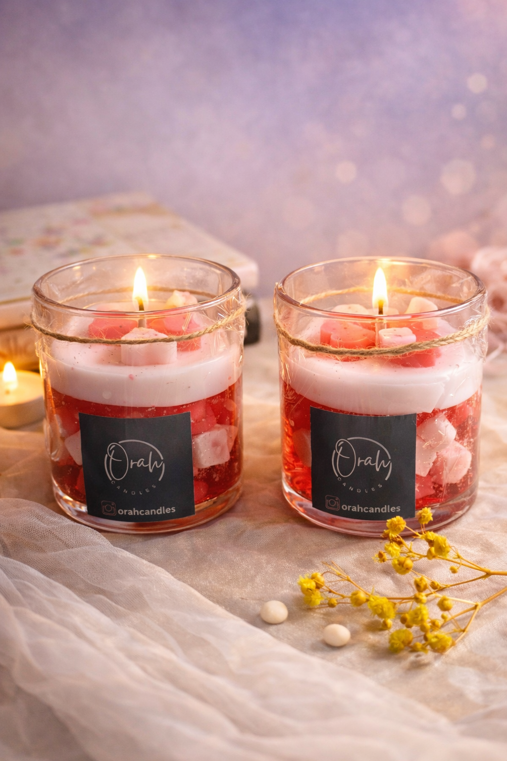 The Orah Heart Blend Candle is a celebration of warmth, love, and handcrafted beauty. Designed with soft layers of blush white and deep ruby red wax, this candle creates a soothing visual charm even before it’s lit.