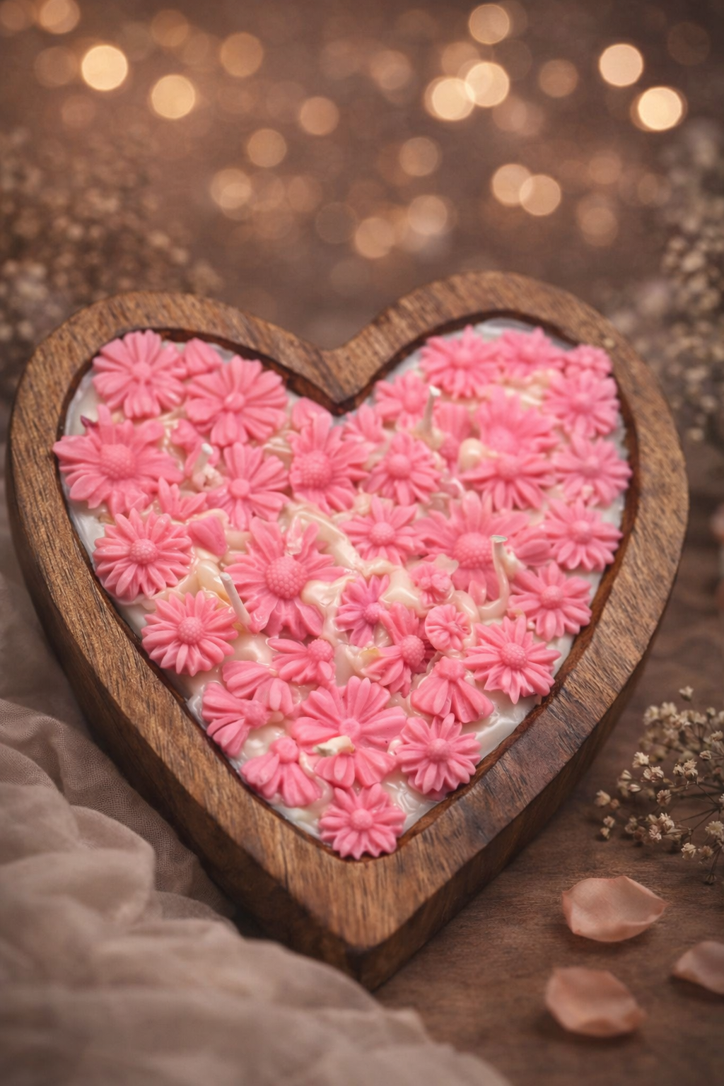 The Wooden Heart Candle is beautifully handcrafted in a heart-shaped wooden base, bringing a natural and cozy charm to your space. Its soft glow creates a soothing atmosphere, perfect for relaxing evenings, self-care moments, or heartfelt gifting.