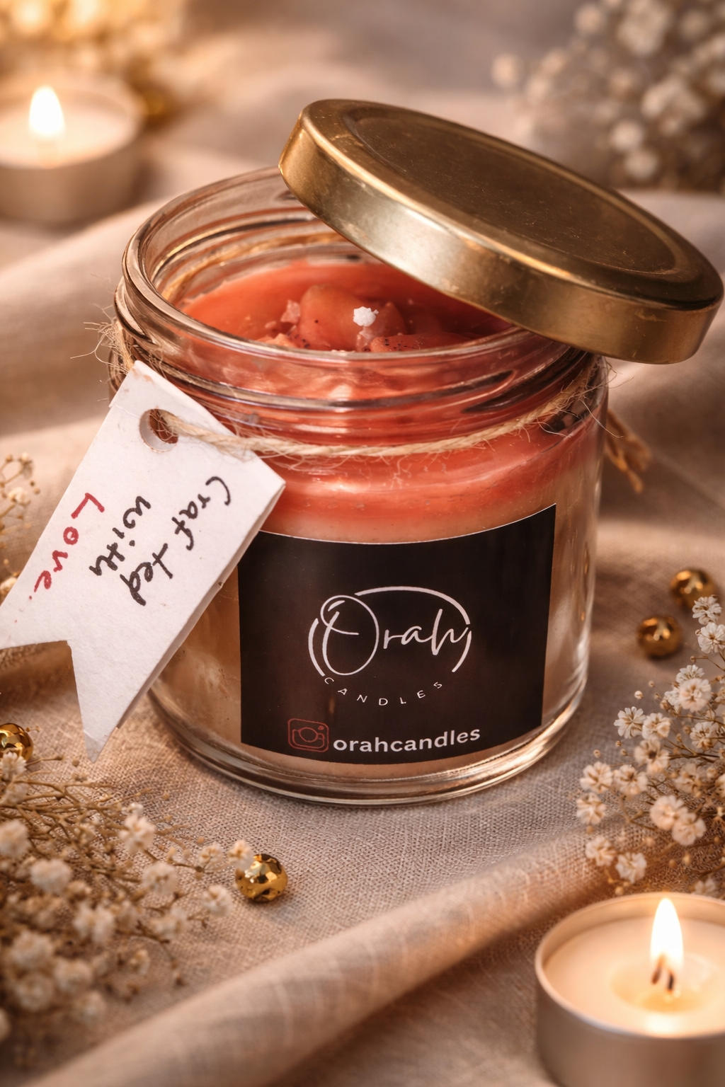 Our jar candles are thoughtfully handcrafted to fill your space with warmth, calm, and beautiful fragrance. Made using high-quality wax and a clean-burning wick, each candle creates a soothing ambience that instantly elevates any room.