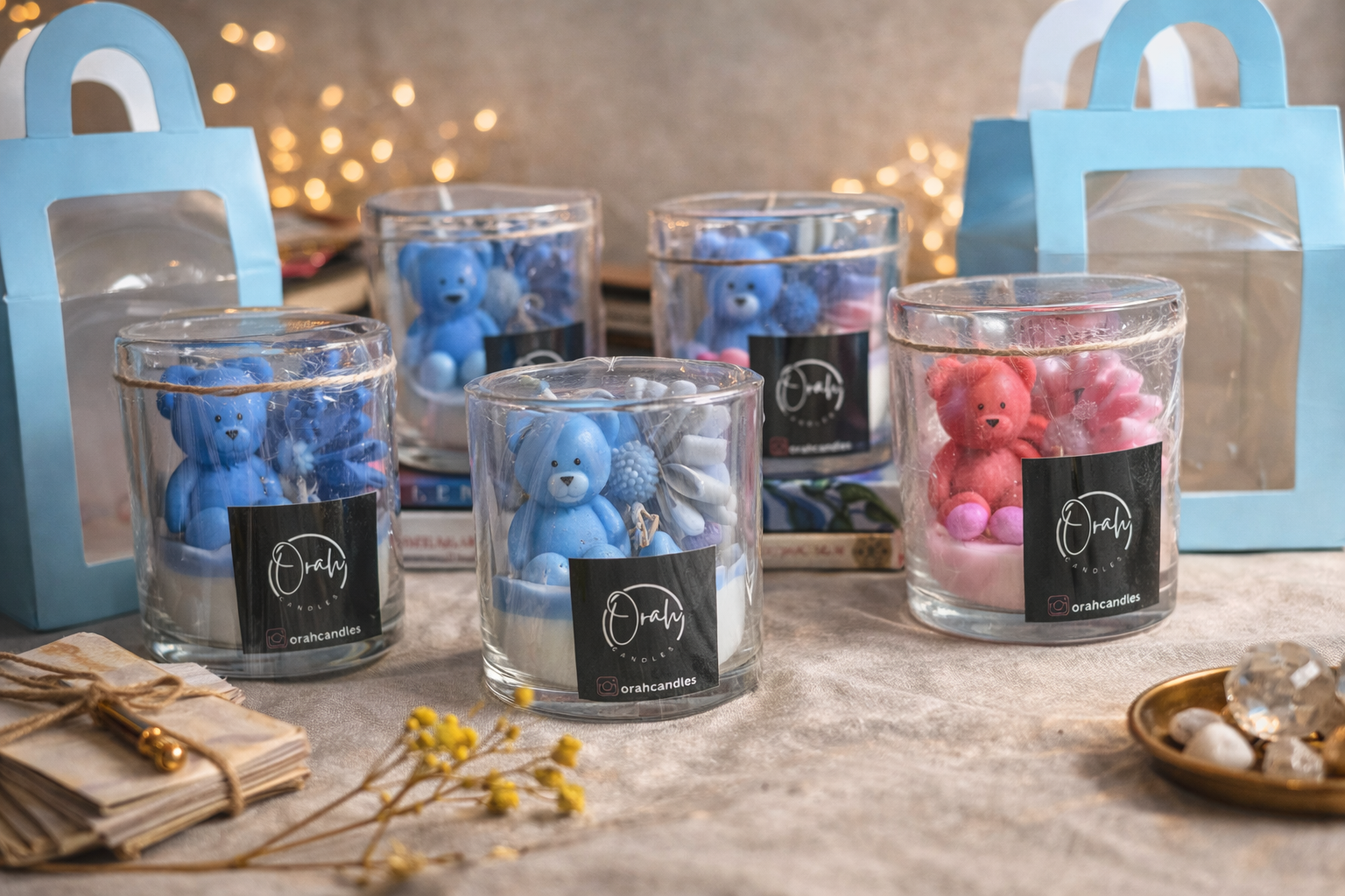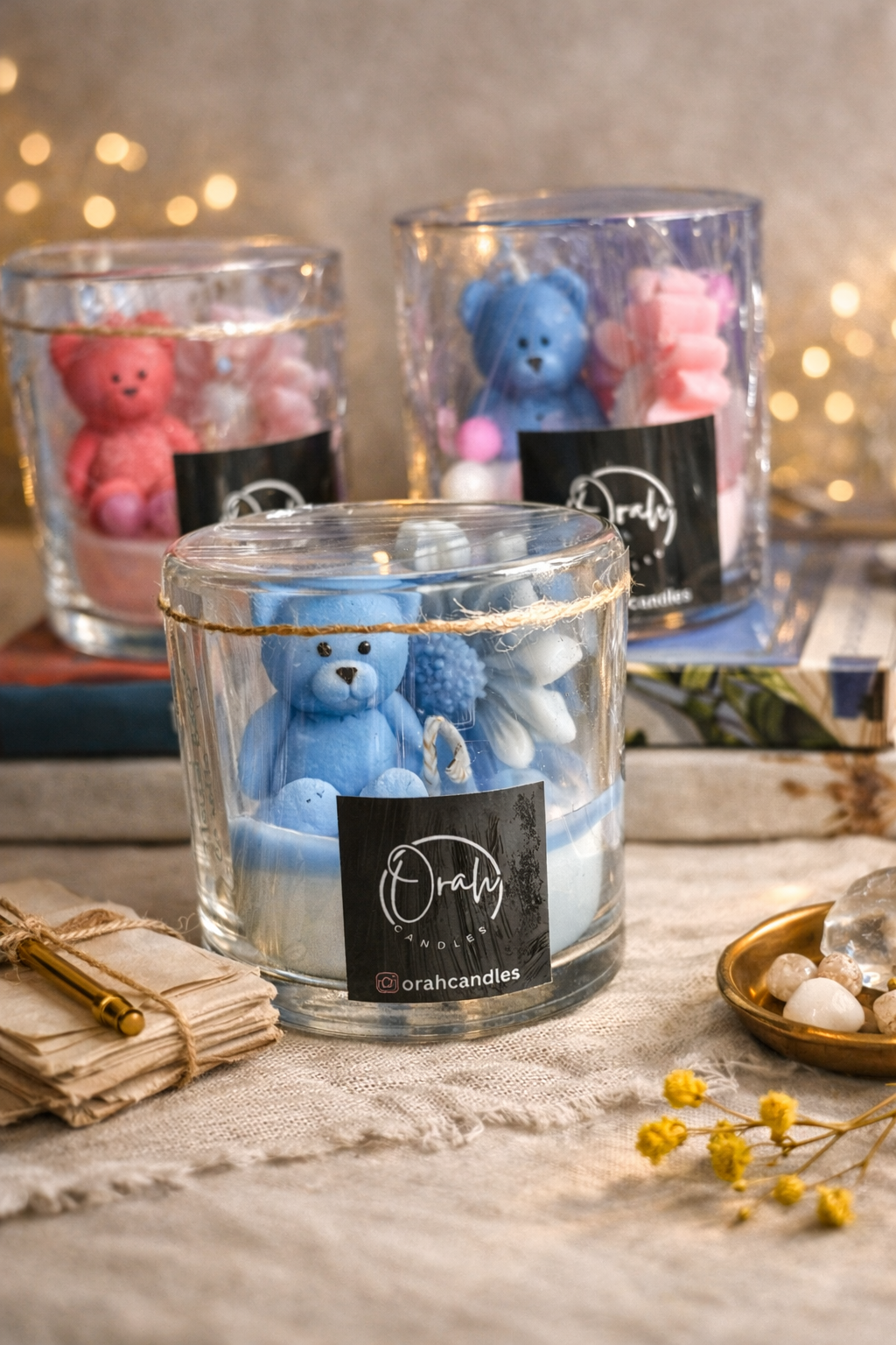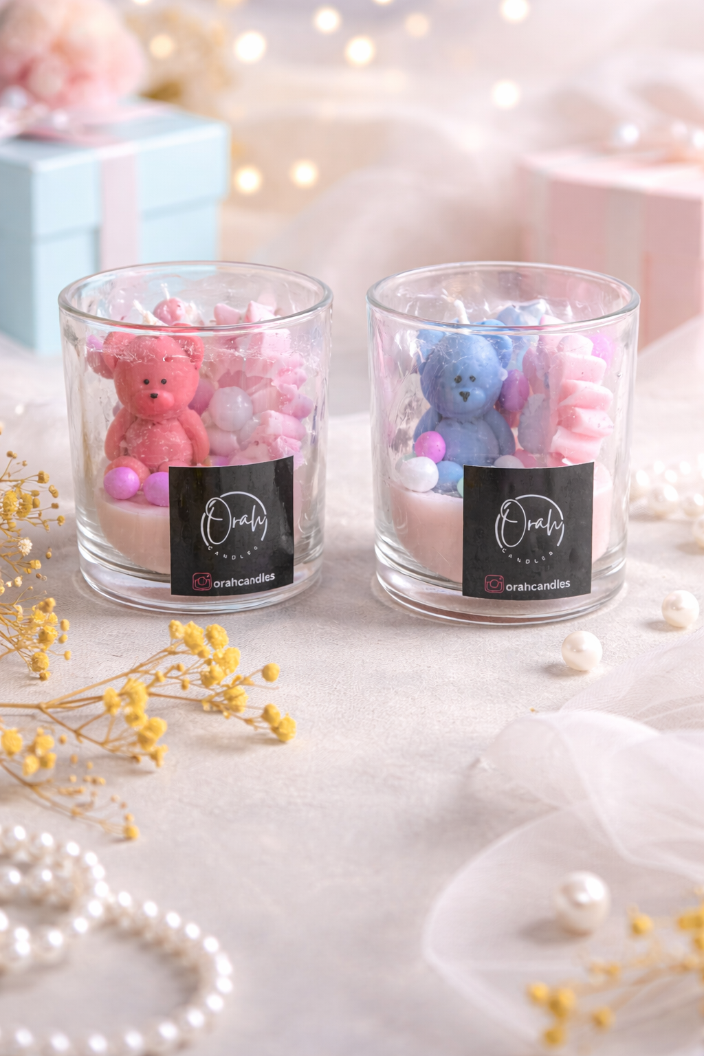 Bring a touch of comfort and charm to your space with our Teddy Glow Jar Candle. Featuring an adorable teddy bear embedded in soft pastel wax, this candle is thoughtfully handcrafted to blend aesthetics with warmth.