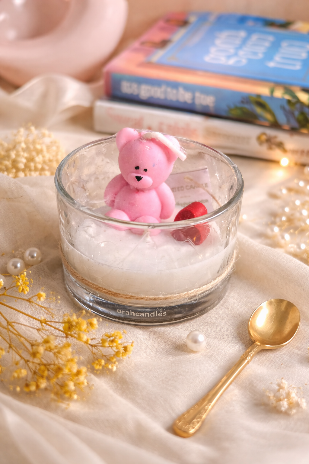Orah Teddy Love Candle is a charming blend of warmth, love, and handcrafted elegance. Featuring an adorable pink teddy nestled inside creamy white wax, this candle is designed to melt hearts even before it’s lit.